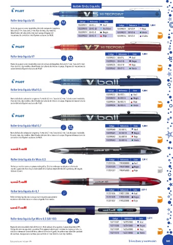 mecanismo de control de tinta VSystem exclusivo de PILOT. 10209020 BX-V5-R Rojo 10209016 BX-V5-V Violeta 12