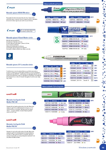 Puede borrarse en seco de pizarras blancas y superficies como vidrio y 10204154 351-9 Negro 10 1,30 € 10203603 351-30 Azul claro 10 1,30 €