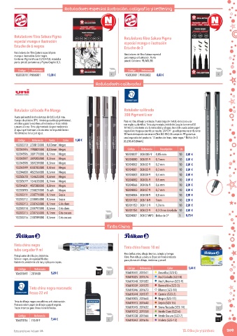 artístico y para la escritura, ofreciendo un trazo nítido con reglas y plantillas. Tinta pigmentada, indeleble (según la norma ISO