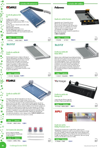 hasta 8 hojas de papel de 70 g/m². Cuchilla circular rotativa rectificada. Cuchilla inferior. Código Referencia