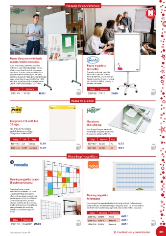 rotuladores. Incorpora pinza para colocar blocs Pizarra de conferencia magnética