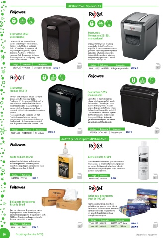 cuando está llena. Destruye grapas, clips y usuario. Destruye hasta 5 hojas en tiras