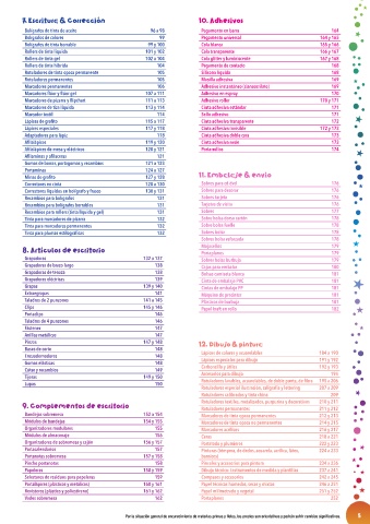 Portalápices (plásticos y metálicos) 160 y 161 Papel técnicas húmedas, secas y mixtas 246 a 251