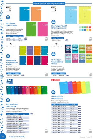 tapa PP 80 hojas Blocs Plastipac F° tapa PP