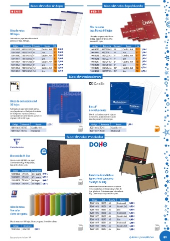 Estos precios no incluyen IVA 6. Blocs y cuadernos 89